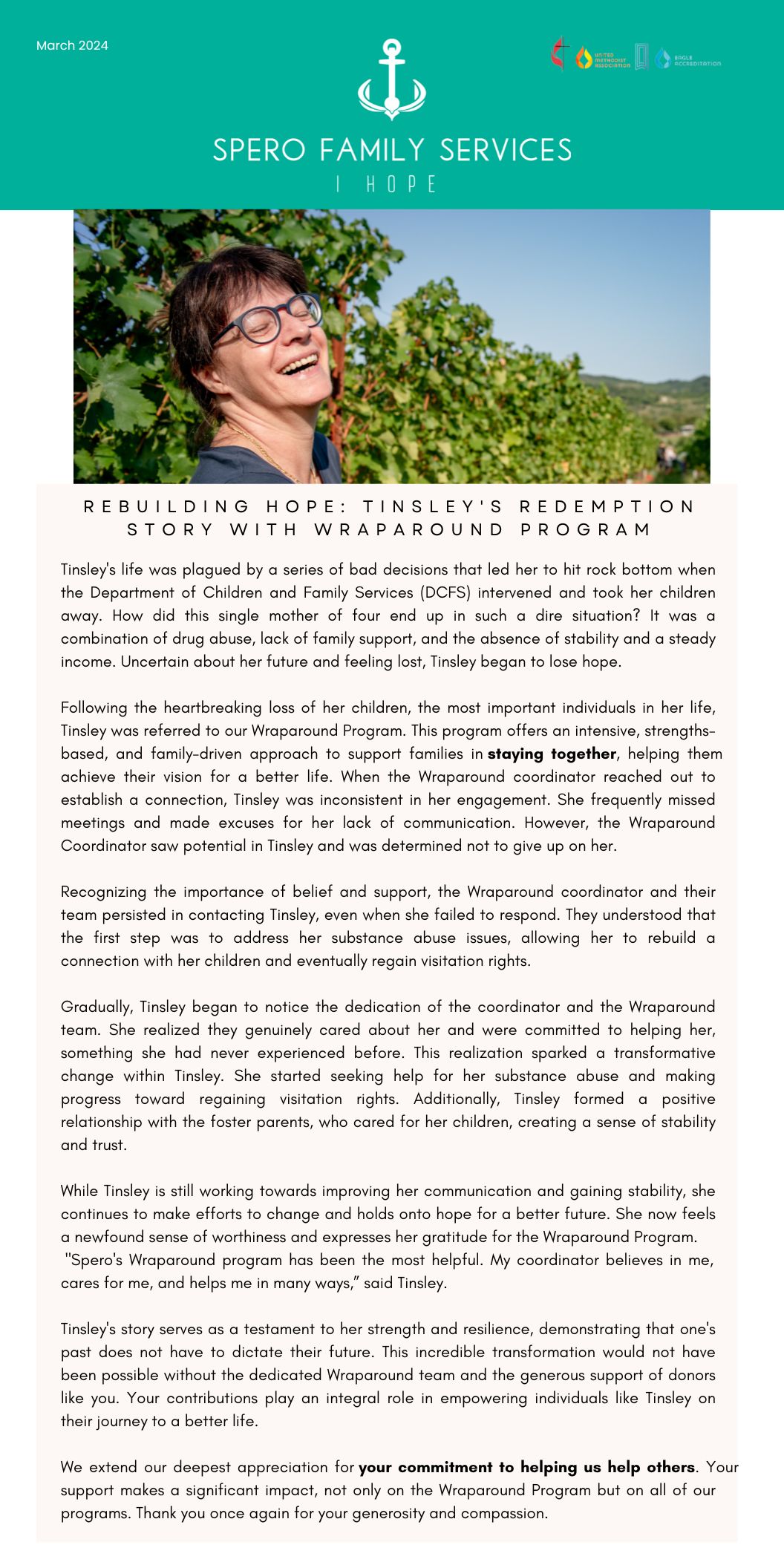 Although Spero Family Services is a faith-based agency, programs are open and available to anyone fitting the service criteria without discrimination and regardless of faith or denominational background.
