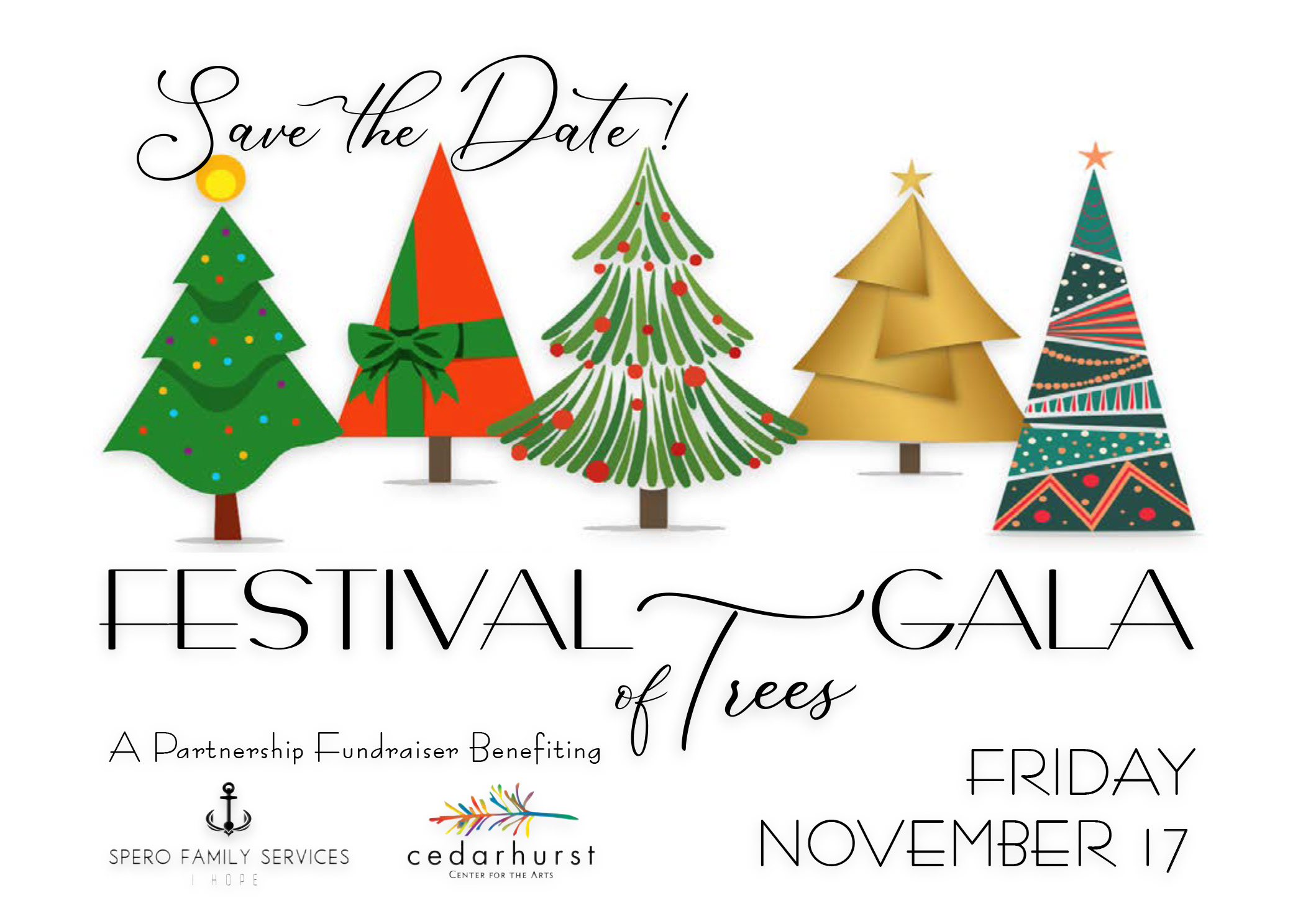 The Spero & Cedarhurst Festival of Trees Gala is a magical evening showcasing a live auction of stunningly decorated Christmas trees and handcrafted baskets filled with luxurious prize packages. Enjoy an evening of delicious dinner, captivating entertainment, and fun-filled games. Join us to celebrate the holiday season while supporting two meaningful causes in the community!