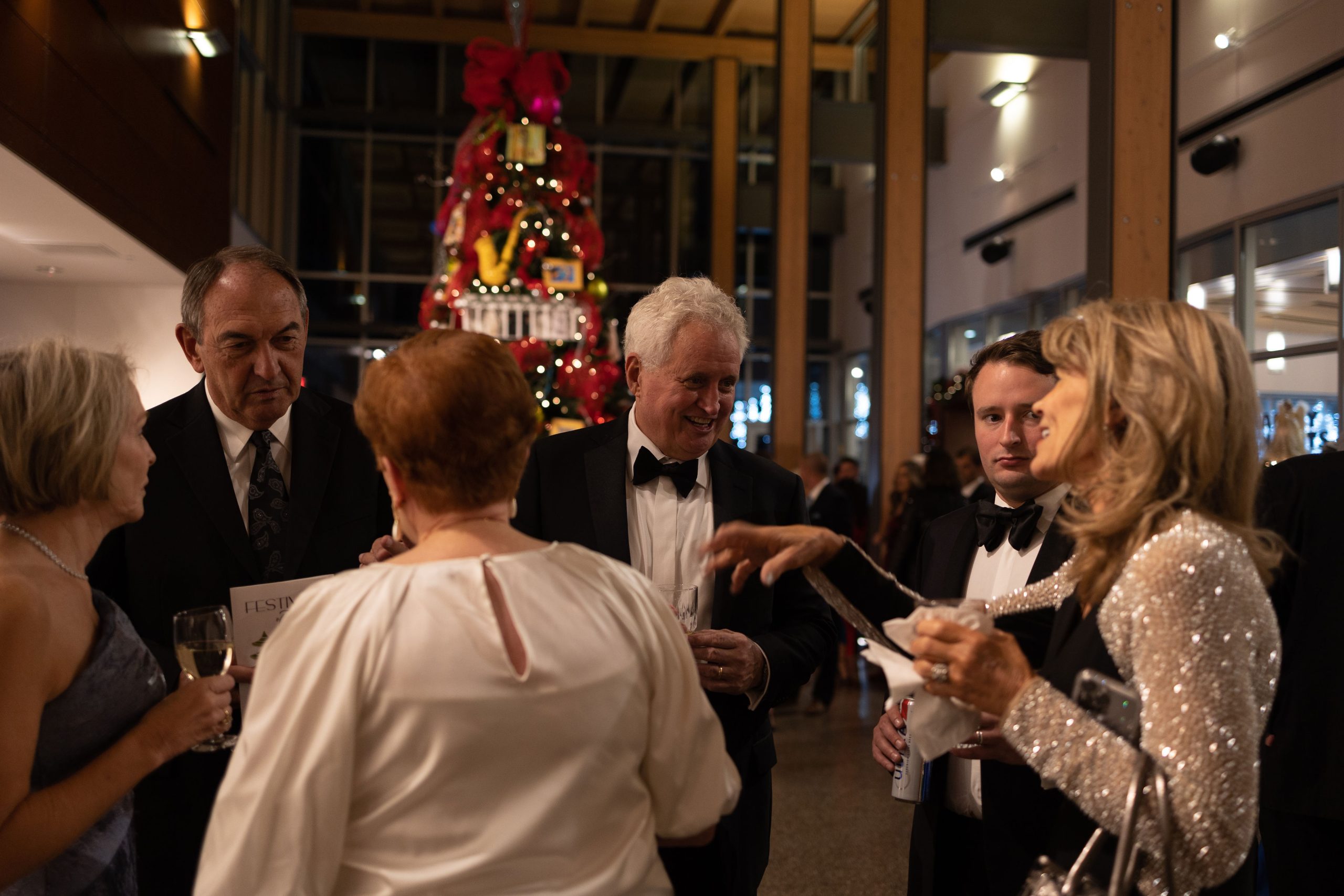 Upgrade to a VIP ticket and enjoy early entry at 5:30 PM with a sparkling champagne welcome. VIP guests also receive exclusive early bidding on Buy-It-Now trees and wreaths, a branded Festival cup, and the first photo opportunity—plus entry into a special prize drawing during the program.