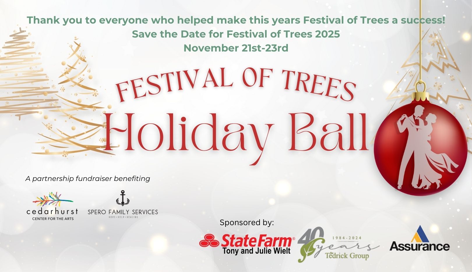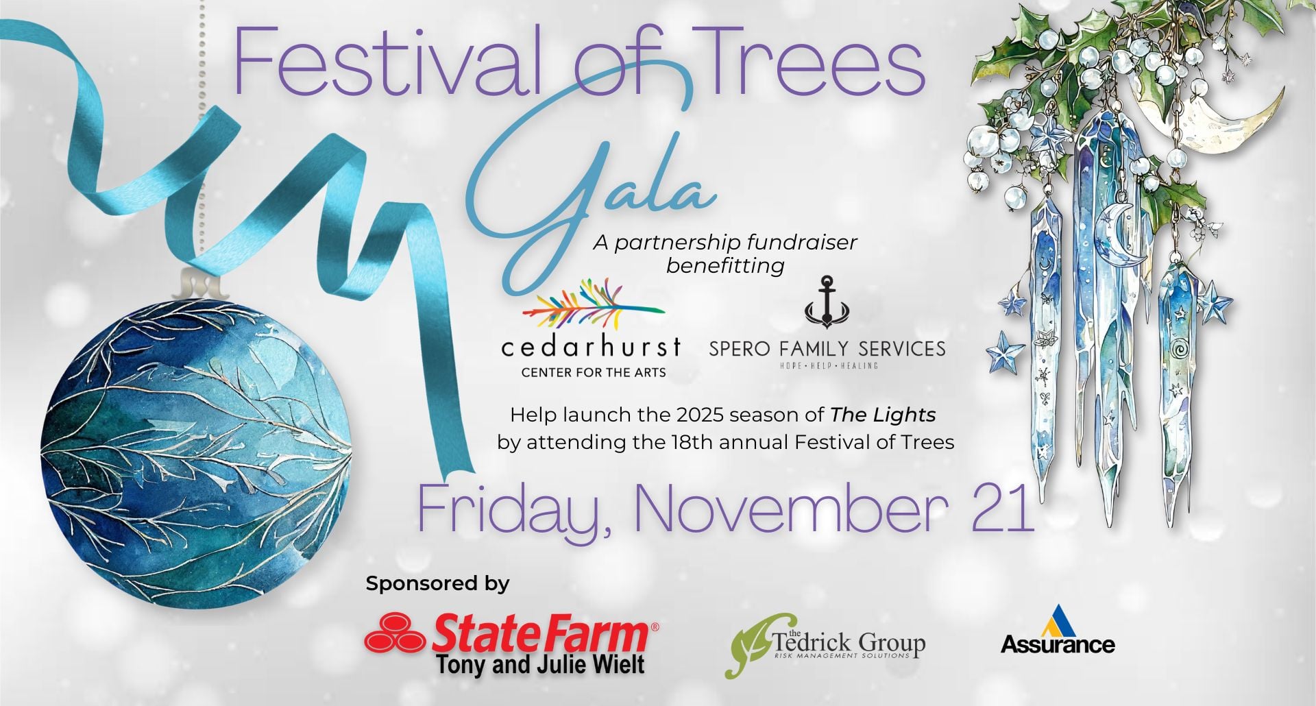 Join us for the 18th Annual Festival of Trees Holiday Gala on Friday, November 21st, at the Cedarhurst Center for the Arts!
