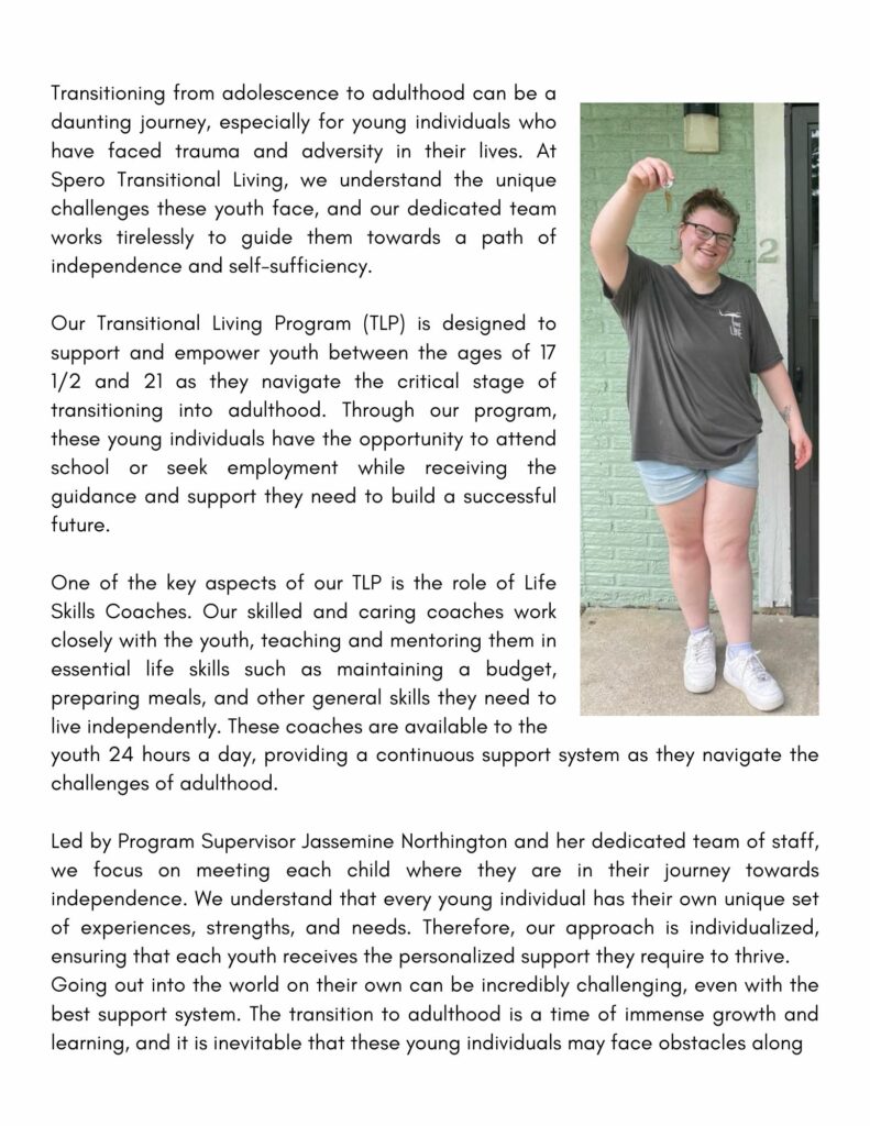 Spero Transitional Living Program Guides Youth Towards Independence by Ranee Kujawa | Jul 12, 2024 | transitional living program